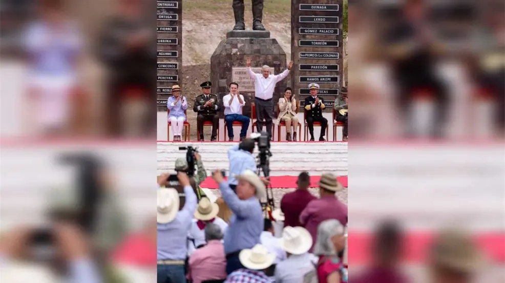 Estuvo presente el presidente AMLO en Durango para conmemorar el aniversario luctuoso de Francisco Villa. Foto: Facebook Esteban Villegas Villarreal.
