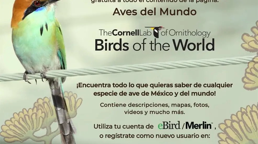 CIUDAD VICTORIA, Tamaulipas.- Esta semana la Comisión para el Conocimiento y Uso de la Biodiversidad anunció en sus redes sociales que a partir del mes de agosto todos podemos acceder de manera gratuita a la página 'Aves del mundo'.