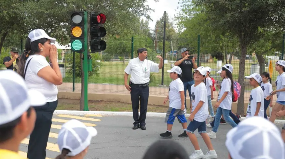 NUEVO LAREDO, Tamaulipas.- El Gobierno Municipal, a través de la Dirección de Tránsito y Vialidad, reabrió el Parque Vial en el complejo recreativo del Parque Viveros con un campamento de educación vial que reunió a más de 40 niños. Este espacio renovado simula una ciudad en miniatura, con calles, puentes, curvas y semáforos, diseñados para enseñar a los menores la importancia de la seguridad vial.