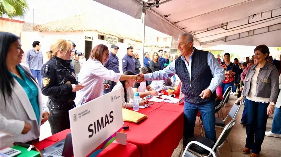 TORREÓN, Coahuila.- El alcalde de Torreón, Román Alberto Cepeda González, realizó una inspección en la brigada multidisciplinaria de servicios en el ejido La Partida, donde la comunidad puede acceder a distintos trámites, incluyendo el pago del predial.