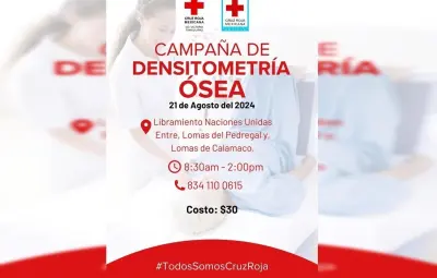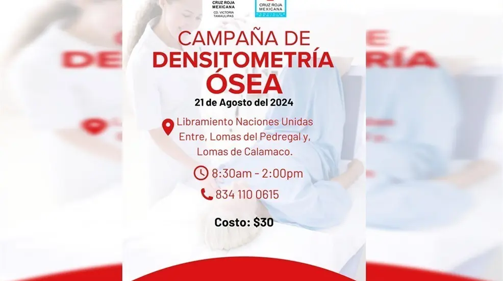 CIUDAD VICTORIA, Tamaulipas.- Eres paciente con riesgo de osteoporosis o crees que puedes padecer esta enfermedad. Asiste a la campaña de Desintometría Ósea que realiza la Cruz Roja.