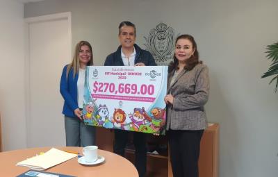 La titular de la Dirección del Deporte, perteneciente al Instituto, Liliana Juárez Rodríguez, y el director municipal de Administración y Finanzas, Ignacio Orrante Ramírez, entregaron 270 mil 669 pesos recabados por concepto de inscripción a la presidenta del DIF Municipal, Guadalupe Ochoa Rodríguez.