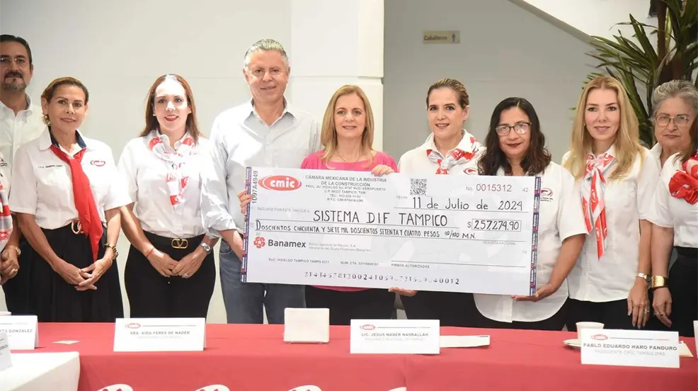 TAMPICO, Tamaulipas.- El Sistema para el Desarrollo Integral de la Familia (DIF) de Tampico recibió un importante donativo por parte de la Cámara Mexicana de la Industria de la Construcción en Tamaulipas (CMIC), con el objetivo de respaldar las acciones de bienestar social emprendidas por ambas instituciones.