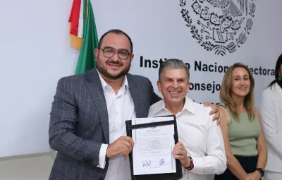 GUANAJUATO, Guanajuato.- Ricardo Sheffield Padilla recibió su constancia de mayoría como senador de la República junto a su compañera de fórmula Virginia Magaña en la junta local ejecutiva del Instituto Nacional Electoral (INE).