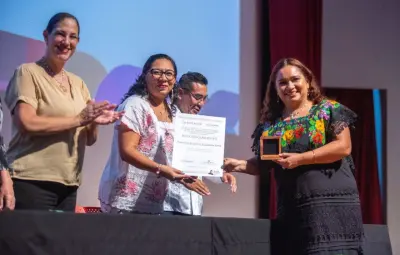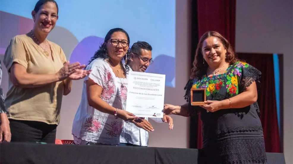 También se reconoció el proyecto “Del aula a la fiesta, una aventura que no se queda en cuatro paredes” del maestro Abraham Pech Kuyoc, de la escuela Primaria “Leona Vicario” en Xalaú, Chemax.