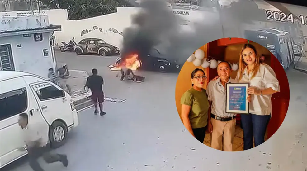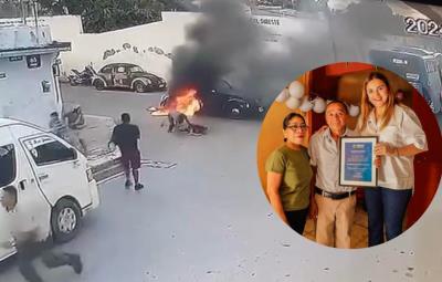 Reconocen a héroe que salvó a una familia del incendio de un auto en Mérida