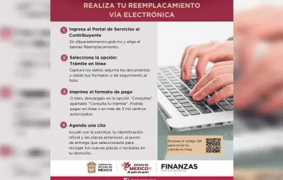 TOLUCA, Estado de México.- El Gobierno del Estado de México, a través de la Secretaría de Finanzas, ha lanzado un nuevo servicio en línea para facilitar el reemplacamiento vehicular a los propietarios de vehículos con placas expedidas en 2019 y años anteriores.