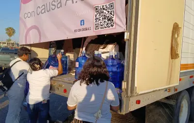 LOS CABOS , Baja California Sur .- Ante el estrés hídrico que se vive en el municipio de Los Cabos, recientemente la asociación Civil “Veo con Causa” entregó poco más de 200 garrafones a familias de Cabo San Lucas, dada la situación que enfrentan las familias sanluqueña para acceder a este vital líquido. El apoyo fue entregado en la plaza pública León Cota Collins.