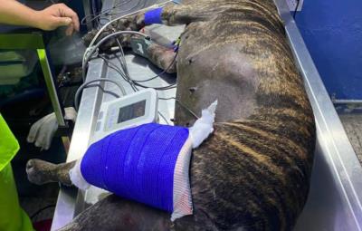 'Turbina' fue trasladada a una clínica veterinaria donde recibirá la atención médica necesaria. Actualmente, se encuentra bajo observación y está recibiendo tratamiento para sus lesiones.
