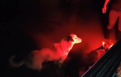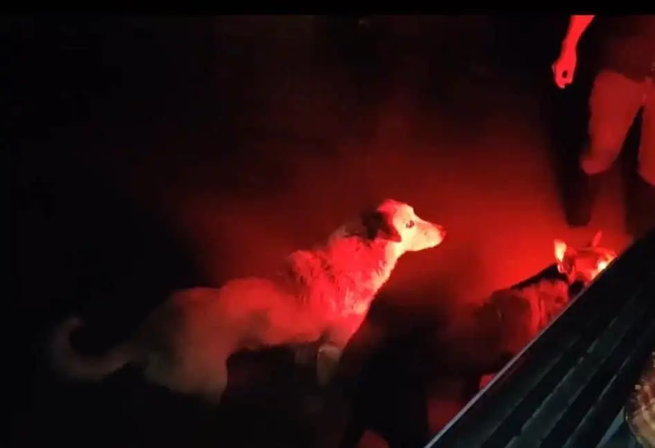 Las imágenes que pronto se hicieron virales en redes sociales muestran a los hombres navegando por las calles inundadas del puerto mientras transportan a los canes hacia lugares seguros.
