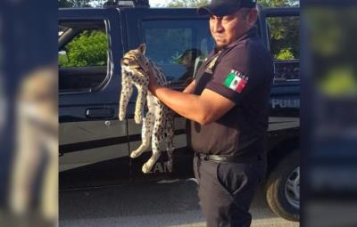 MÉRIDA, Yucatán.- La mañana del martes, la Policía Municipal de Cansahcab rescató a un tigrillo, especie en peligro de extinción, que fue atropellado y abandonado en la carretera Cansahcab-Tizimín. El incidente ocurrió a las 06:34 horas en el kilómetro 46 de dicha carretera.
