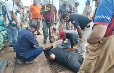 VICTORIA, Tam.- Rescatan cocodrilo atorado en el acueducto de Victoria, el cual fue descubierto mientras realizaban la reparación de una fuga en la tubería.