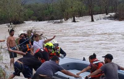 Rescatan en Jaumave a personas, tras crecida del Río Chihue