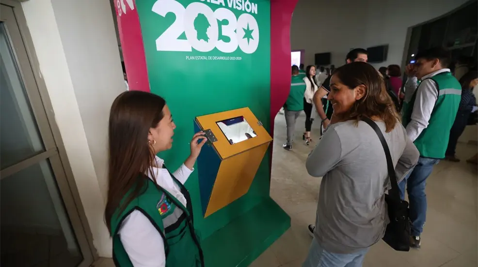 Se han instalado, además, mecanismos digitales como un chatbot por medio de WhatsApp, a través de un código QR, que recibe de una manera dinámica las propuestas de la ciudadanía. Así mismo, se han instalado buzones receptores en las 38 presidencias municipales para recibir en físico las propuestas, y se tendrán activaciones especiales físicas con una cabina móvil, que se instalará en las plazas públicas más representativas por región.
