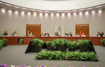 TOLUCA, Estado de México.- Con una hora de retraso, el Consejo General del Instituto Electoral del Estado de México (IEEM) aprobó por unanimidad diferentes Solicitudes de Registro de Candidaturas para las elecciones de Diputaciones Locales y Ayuntamientos 2024.