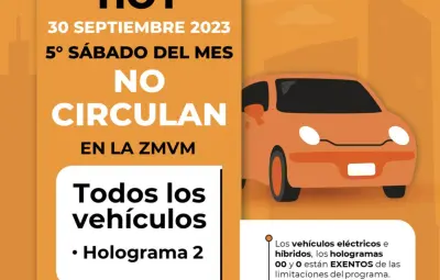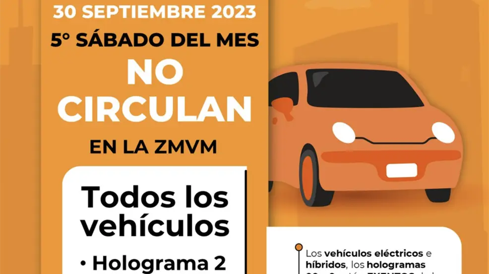 Siendo este el quinto sábado del mes, el "Hoy No Circula" aplica para todos los automóviles con holograma 2, además de los foráneos. Hologramas 0 y 00 están exentos.