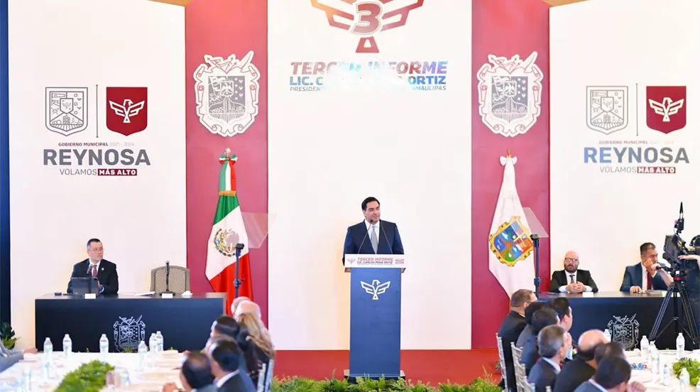REYNOSA, Tamaulipas.- En cumplimiento con su compromiso de transparencia, el Alcalde Carlos Peña Ortiz presentó su Tercer Informe de Gobierno, correspondiente al período 2021-2024, en la Sexta Sesión Solemne de Cabildo este 5 de septiembre.