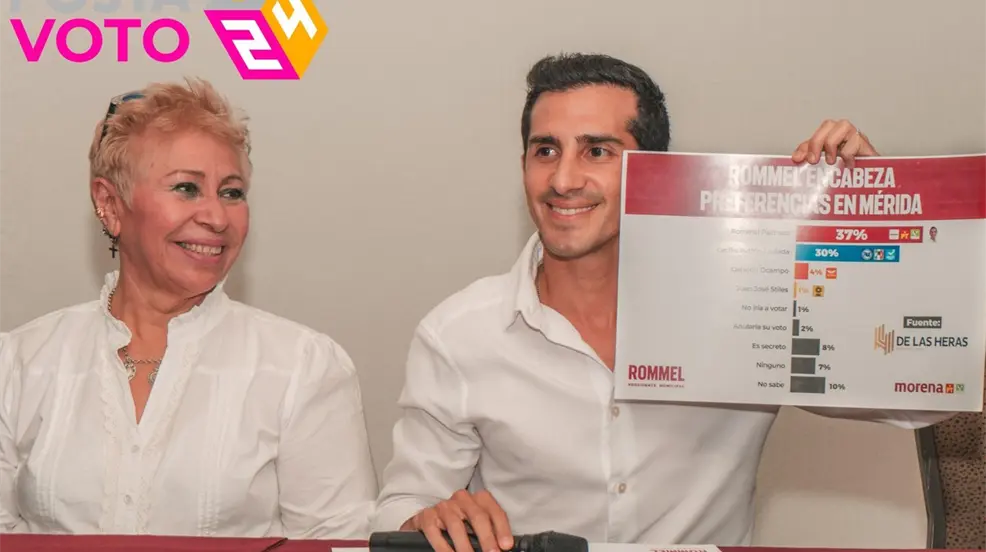 En este sentido, y de acuerdo a encuesta realizada por De Las Heras, y difundida ampliamente en diversos medios locales y nacionales, como Reporte Índigo, Grupo Zócalo, Récord, Luces del Siglo, Basta, UnoTV y Excélsior, entre otros, Rommel Pacheco se coloca como puntero en las preferencias electorales para la alcaldía de Mérida, según se dio a conocer hoy en rueda de prensa presidida por el candidato, así como por Omar Pérez Avilés, Presidente de Morena Yucatán, Marifer Vivas, candidata a diputada local por el Distrito II, Tina Tuyub y Víctor Cervera.