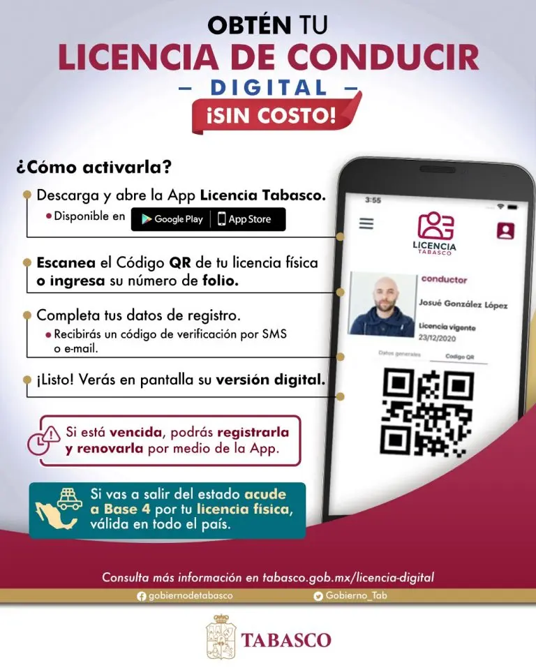 Además, dentro de la aplicación se puede renovar la licencia y también se puede ir a las oficinas de Finanzas en Tabasco y solicitar la impresión física de una tarjeta sin ningún costo únicamente presentando la APP, sin embargo, es importante precisar que solo pueden obtener una licencia digital únicamente los conductores que tenían una licencia física vigente o vencida.