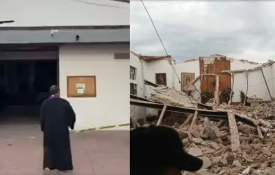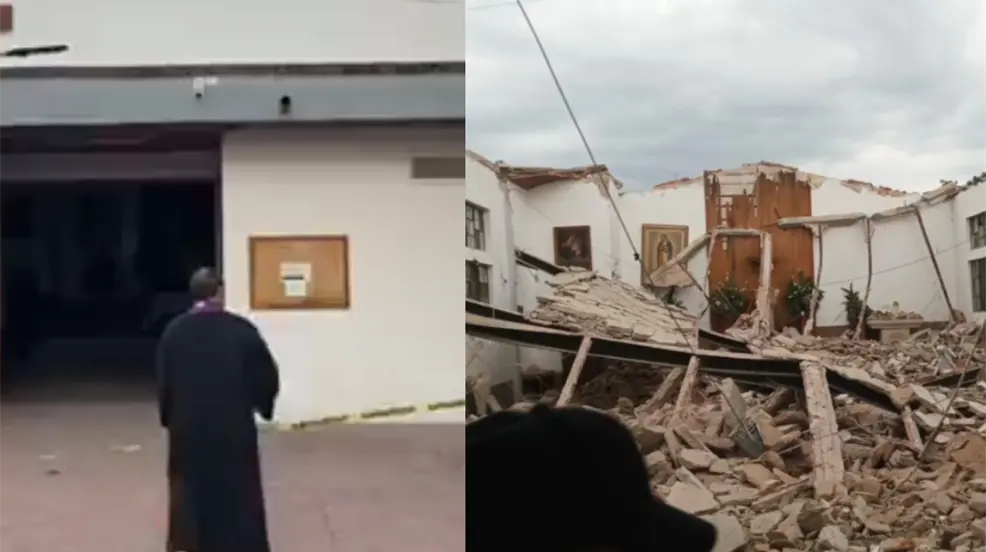 JALISCO.- Un sacerdote se salvó milagrosamente de un desplome en la iglesia de San José de los Obreros en Tala, Jalisco, tras dudar en entrar al templo dañado por un sismo en 2022. A través de un video difundido en redes sociales, muestra al párroco cruzando una cinta de seguridad colocada por Protección Civil, justo antes de que el techo del templo se desplomara por completo. Afortunadamente, no había nadie en el interior en ese momento.