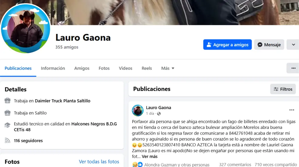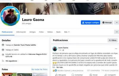 SALTILLO, Coahuila.- En un desafortunado incidente ocurrido en Saltillo, Lauriel Gaona Zamora, conocido como Lauro, perdió una suma significativa de dinero que correspondía a su ahorro, aguinaldo y un premio económico.