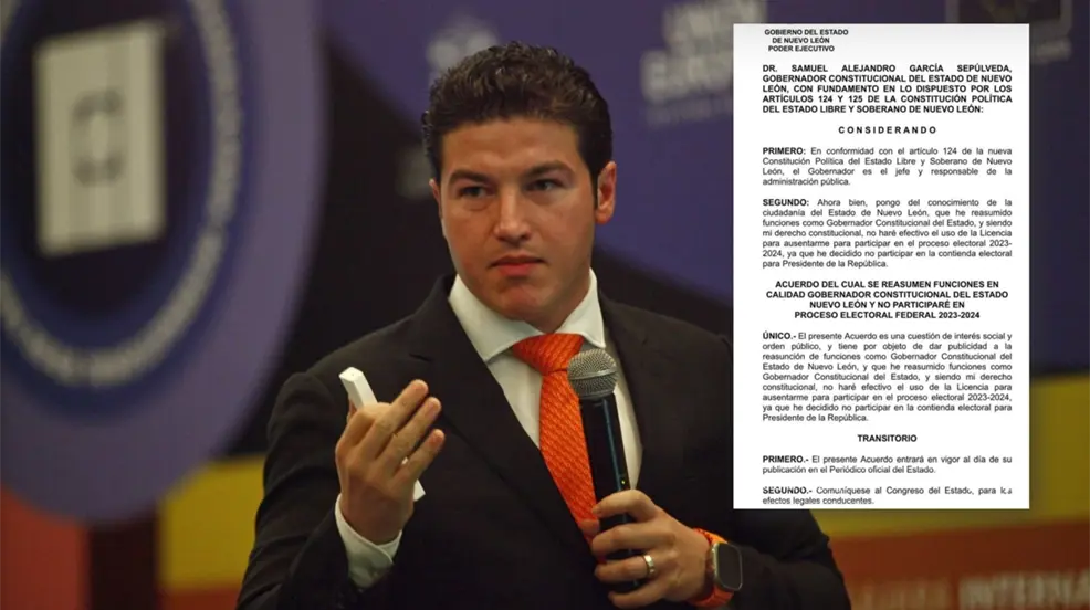 García Sepúlveda informó a la ciudadanía de Nuevo León que ha retomado sus funciones como gobernador constitucional del estado. A pesar de tener el derecho constitucional de hacer uso de una licencia para ausentarse y participar en el proceso electoral 2023-2024, ha decidido no ejercer dicho derecho y no participar en la contienda electoral para la Presidencia de la República.