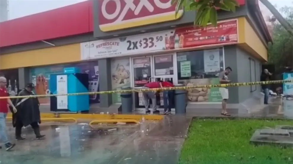 Alrededor de las 3 de la tarde, se registró la caída de una parte del techo de un Oxxo, ubicado en el fraccionamiento Los Héroes, en Mérida. Ante esta situación, los empleados salieron del establecimiento y dieron aviso al número de emergencia 911.
