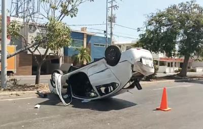 MÉRIDA, Yucatán.- Un auto se dio a la fuga luego de chocar con otro y hacer que volcara sobre la avenida Circuido Colonias a la altura de la colonia México la mañana de este viernes 29 de marzo.
