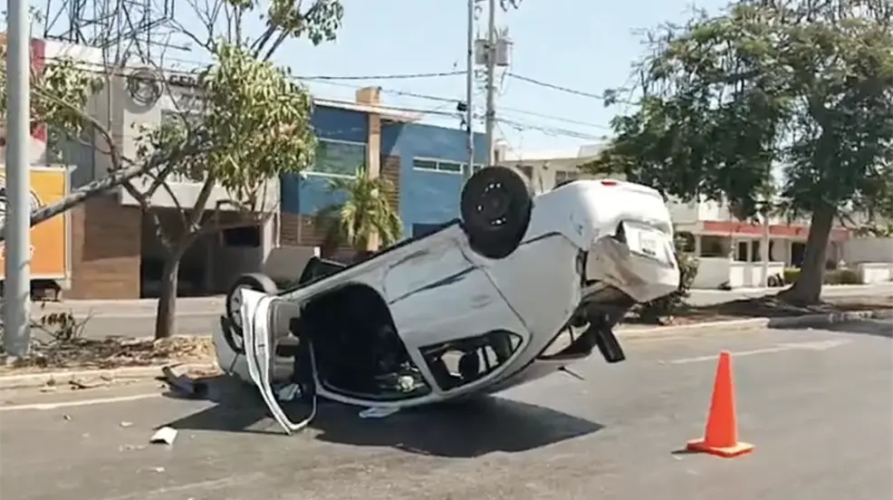 La guiadora del auto volcado y su pasajero fueron atendidos por parámedicos sufriendo nada más golpes leves. Agentes de la SSP pidieron apoyo de aseguradora, peritos y grúa para tomar nota del accidente