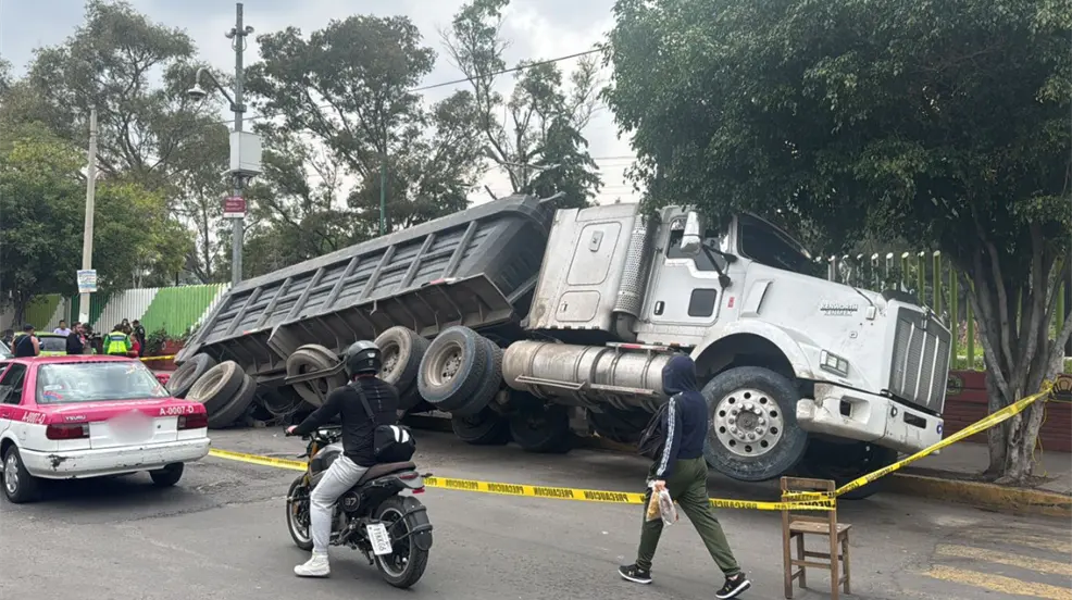 Ocurrió sobre la lateral de la avenida Gran Canal, a la altura de la calle Puerto Tampico, en la colonia Casas Alemán de la alcaldía Gustavo A. Madero, donde un vehículo de volteo, se hundió de la parte trasera, luego de que se formara un socavón de 2 metros de diámetro por 3 metros de profundidad.