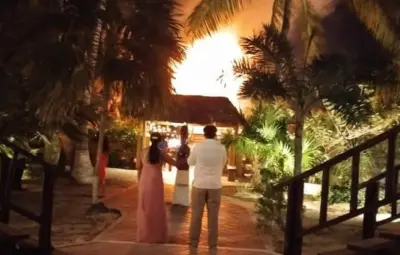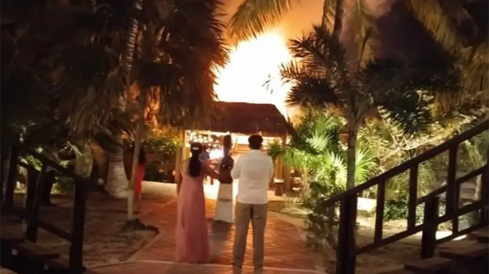 El siniestro comenzó en unas palmeras de coco a causa de una pirotecnia mal colocada que fue directamente al árbol, cuyas ramas estaban secas; esto sumado a la falta de precaución provocaron el fuego que volvió la noche inolvidable, pero no por la fiesta o la felicidad de la pareja.