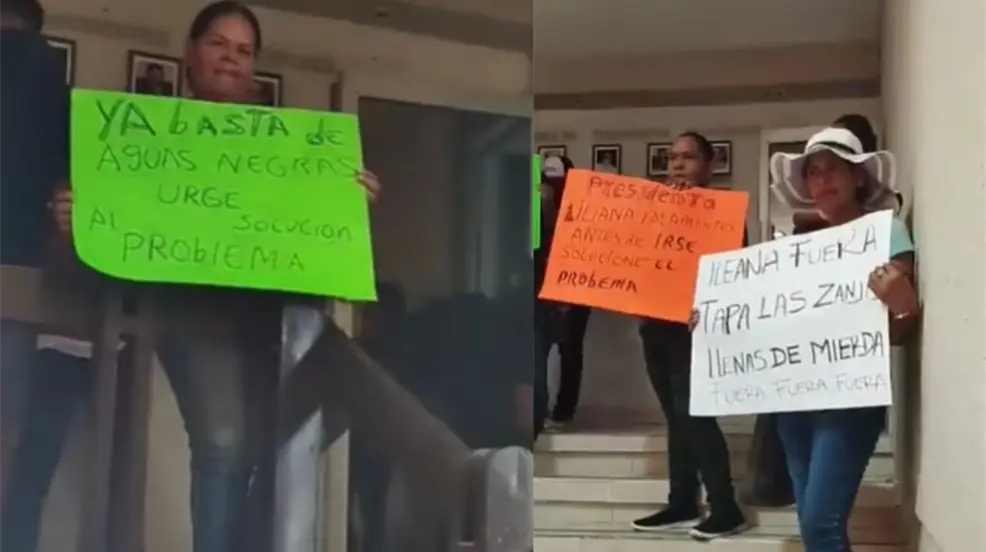 Las mujeres, que portaban carteles con mensajes como 'Ileana fuera, tapa las zanjas llenas de mierda' y 'Ya basta de aguas negras, urge solución al problema', denunciaban que no les permitieron ingresar al recinto donde se encontraba la alcaldesa y que incluso pusieron candados en las puertas para evitar su entrada.