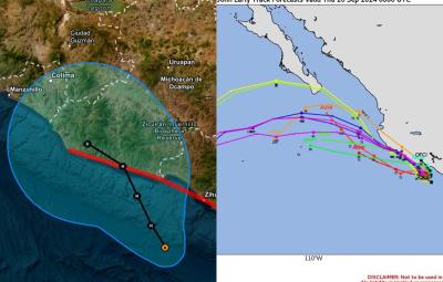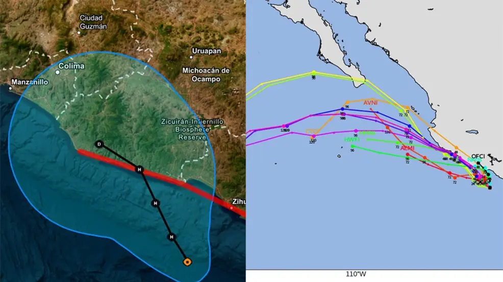 - Zona de vigilancia por huracán: Desde Acapulco hasta Técpan de Galeana, Guerrero, y desde Lázaro Cárdenas hasta Punta San Telmo, Michoacán.