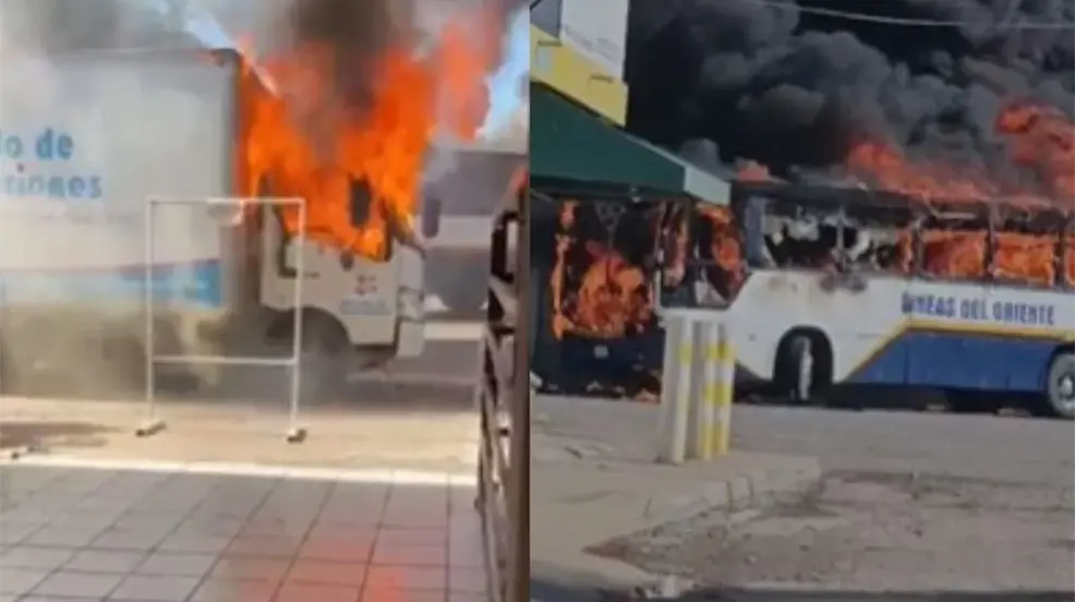 Quema de vehiculos, narcobloqueos, balacera, entre militares y delincuentes al en Culiacán Sinaloa.