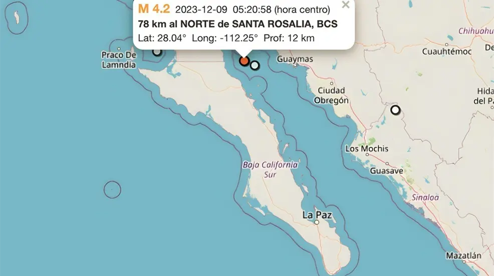 Es importante destacar que durante los primeros días del mes de diciembre ya se han reportado un total de dos temblores cerca de Santa Rosalía. Afortunadamente, ninguno de estos sismos representó un riesgo para la ciudadanía.
