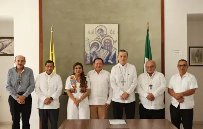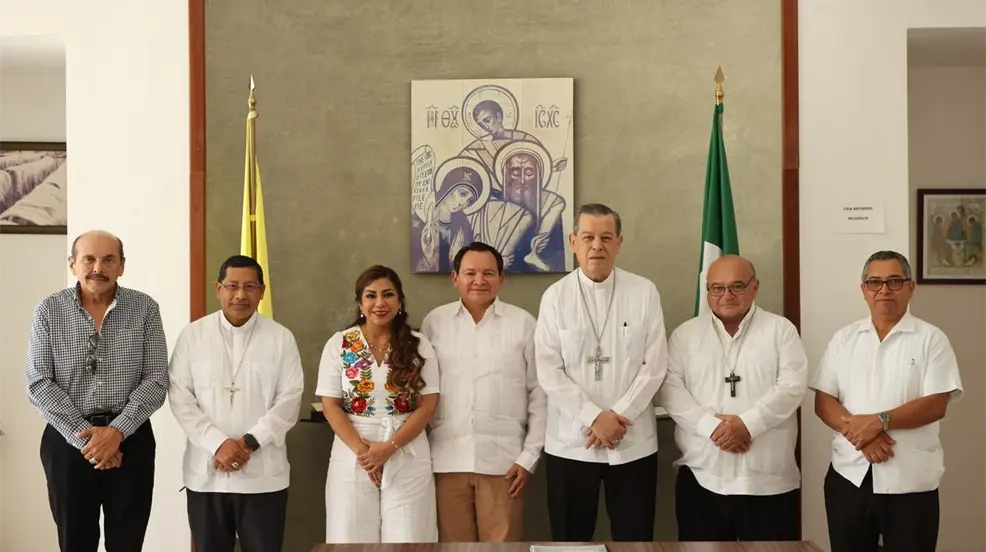 El encuentro contó también con la presencia del obispo auxiliar, Pedro Mena Díaz, lo que reforzó el mensaje de colaboración entre el gobierno y los diferentes sectores de la sociedad. Díaz Mena subrayó que su gobierno, que comenzará el 1 de octubre, trabajará incansablemente para mejorar el bienestar de las familias yucatecas, poniendo énfasis en la igualdad y la justicia social.