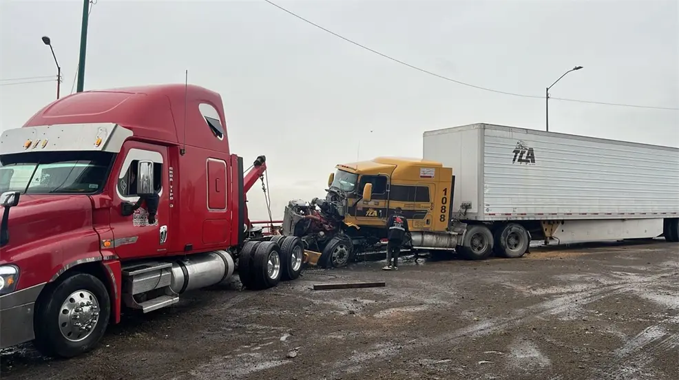 Tráiler se salva de caer de un puente vehicular en Tlalnepantla: conductor resulta ileso.