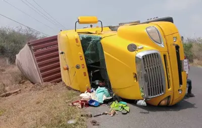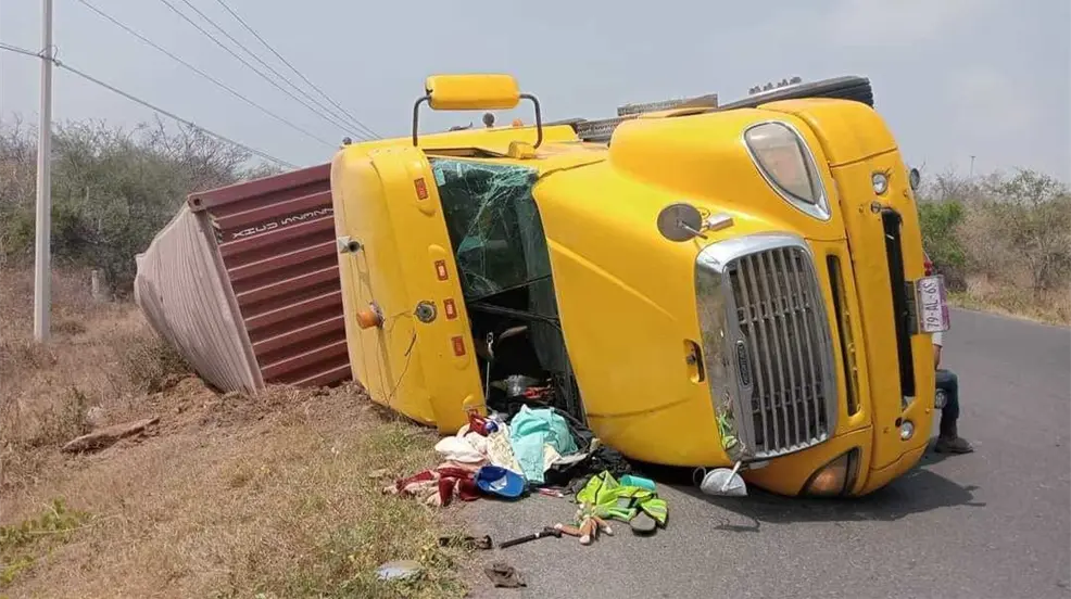 Afortunadamente, no se reportan personas lesionadas como resultado del accidente, solo daños materiales causados por la volcadura del tráiler.