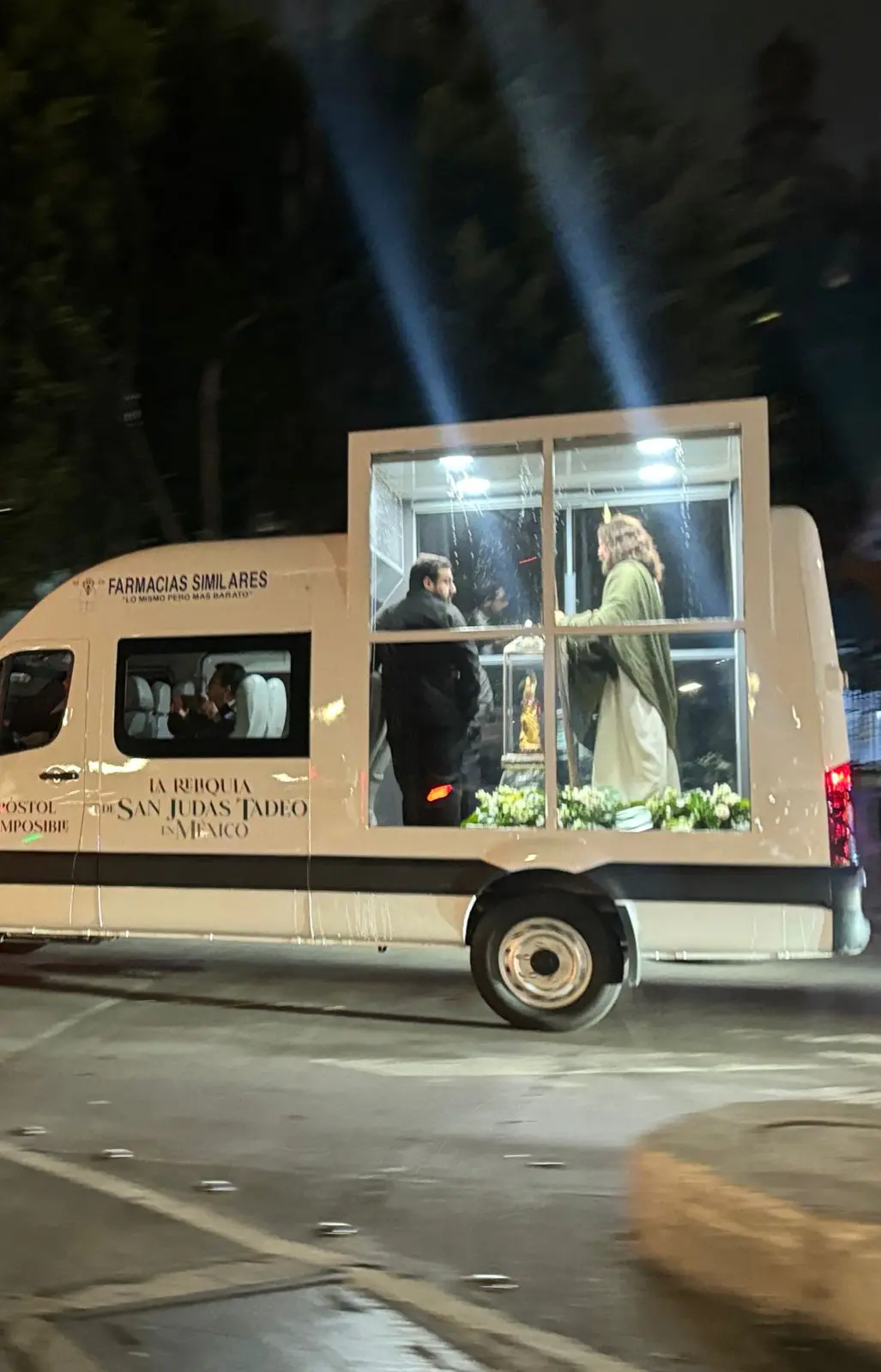 El vehículo de exposición, especialmente acondicionado con una enorme vitrina, recorrió las calles de Guatemala, Tacuba y avenida Hidalgo, cruzando el Eje Central Lázaro Cárdenas y Paseo de la Reforma, hasta llegar a la iglesia ubicada en la esquina de la avenida Hidalgo.