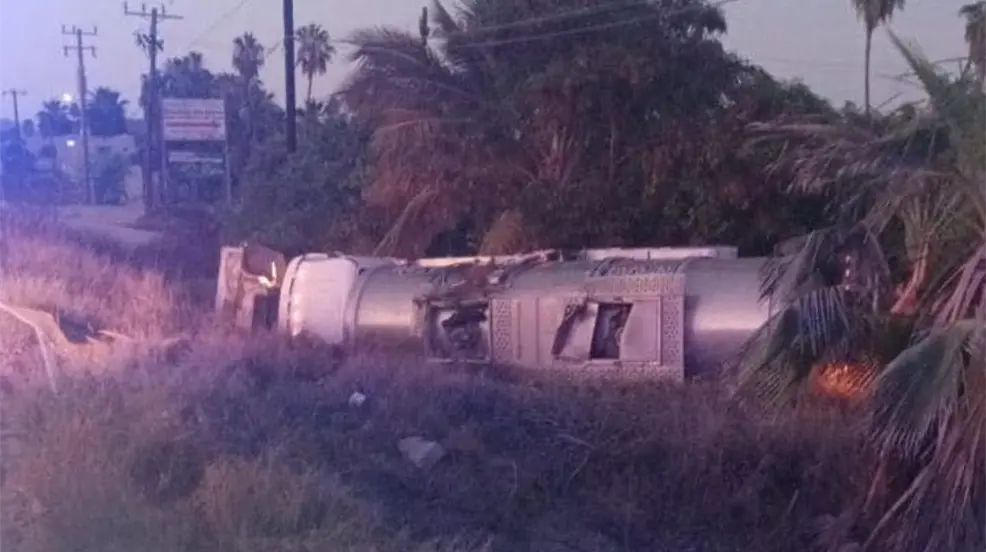 LA PAZ, Baja California Sur.- En menos de una semana, se ha registrado otro accidente tipo volcadura de una pipa de la empresa Díaz Álvarez. Esta mañana, en el kilómetro 60 del tramo carretero La Paz-Pescadero, una pipa que transportaba combustible sufrió una volcadura.