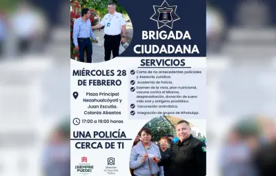 La Brigada Ciudadana se llevará a cabo este miércoles 28 de febrero y comenzará en punto de las 17:00 horas y permanecerá activa hasta las 19:horas. La cita será en la Plaza Principal Nezahualcóyotl y Juan Escutia, Colonia Abastos.