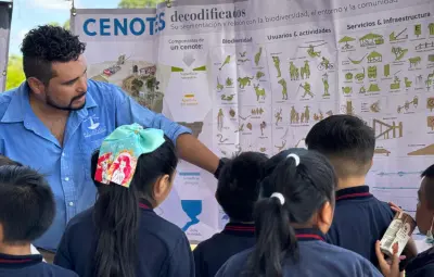 Explicó que, a través de los talleres, los niños aprenden no solo sobre la relevancia de los cenotes como fuente de agua, sino también sobre las especies que habitan en ellos, muchas de las cuales son endémicas de la región.