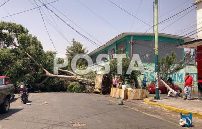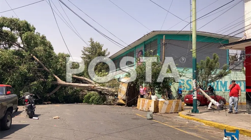 GUSTAVO A. MADERO, Ciudad de México. - Las alertas de los servicios de emergencia se encendieron cuando tres árboles cayeron de manera simultánea al exterior de una escuela privada ubicada en la alcaldía Gustavo A. Madero.