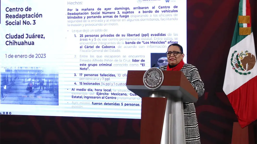 Ciudad de México.- El Gobierno mexicano elevó la cifra de muertos por el motín del domingo en una cárcel en Ciudad Juárez, en la frontera norte, donde además detuvieron a 5 personas por su presunta participación en el hecho, que dejó también 15 heridos y 25 reos que se fugaron.