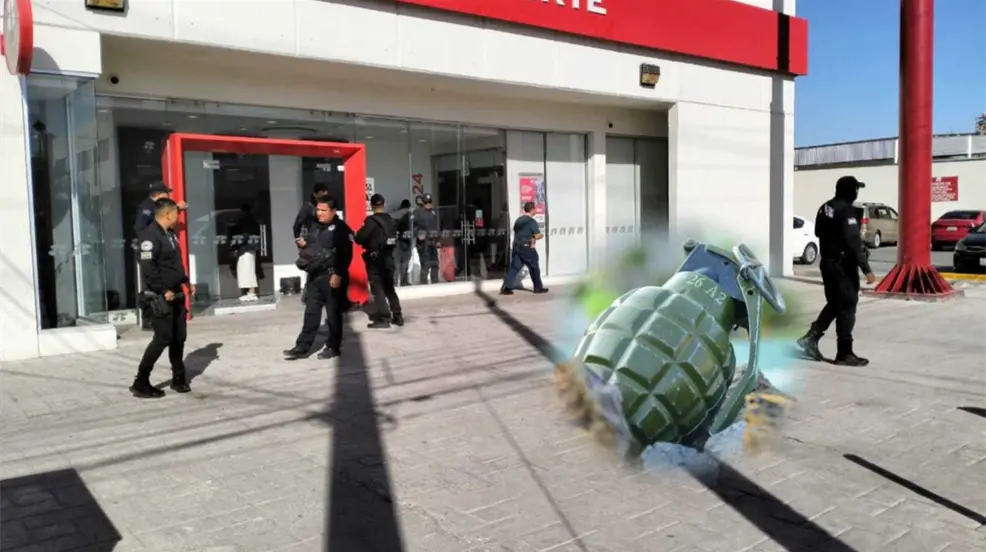 Sucursal de Banorte es atacada por un hombre de unos 50... ¡con una granada!