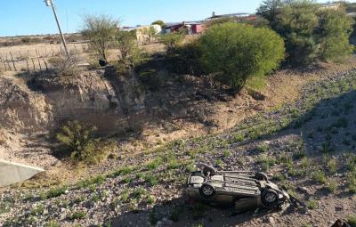 HIDALGO, Durango.- Una familia originaria de Ciudad Juárez, Chihuahua, sufrió un fuerte accidente al pasar por Durango, pues cayeron a un desnivel de 7 metros de profundidad a bordo de su coche.