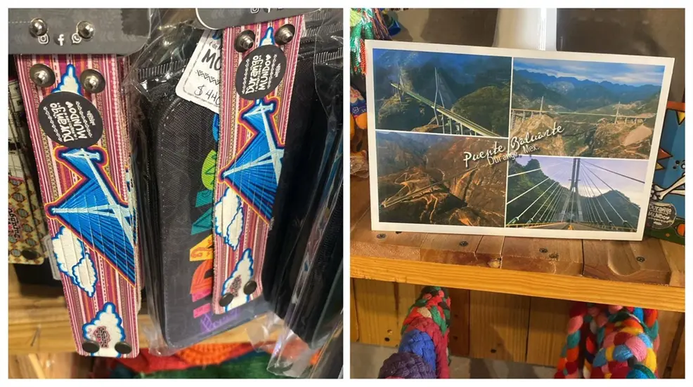 Como se indica, estos suvenir o recuerdos tienen plasmados el Puente Baluarte y estos los puedes encontrar en pulseras, termos, tazas, imanes para el refrigerador, y postales en donde se muestra la majestuosidad de la Sierra Madre Occidental.