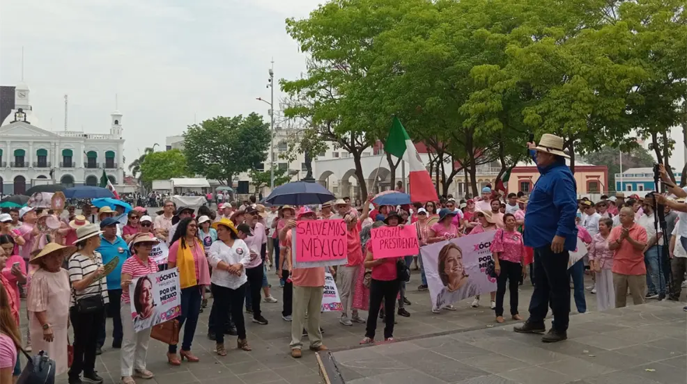 VILLAHERMOSA, Tabasco.-Cientos de simpatizantes de la candidata presidencial Xóchitl Gálvez, realizaron marcha pacífica y una concentración en la Plaza de Armas de la ciudad de Villahermosa.