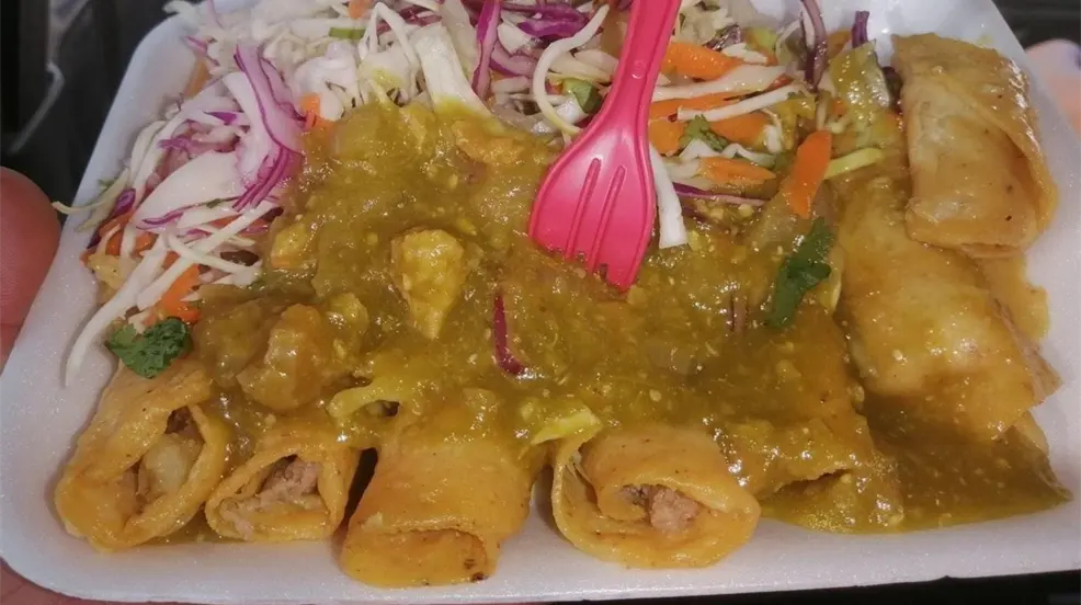 Los tacos estilo Monclova están rellenos de deshebrada con papa, sin embargo, el toque especial es una salsa verde con chicharrón.
