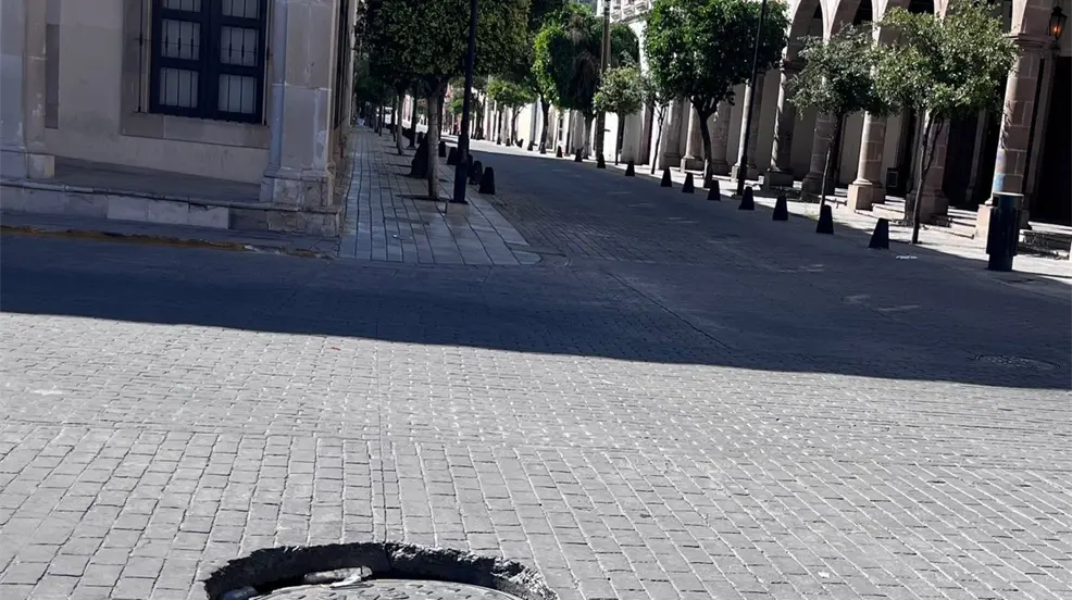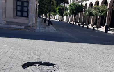 Tapa de CFE en mal estado ocasiona 'mega bache' en crucero de Centro Histórico